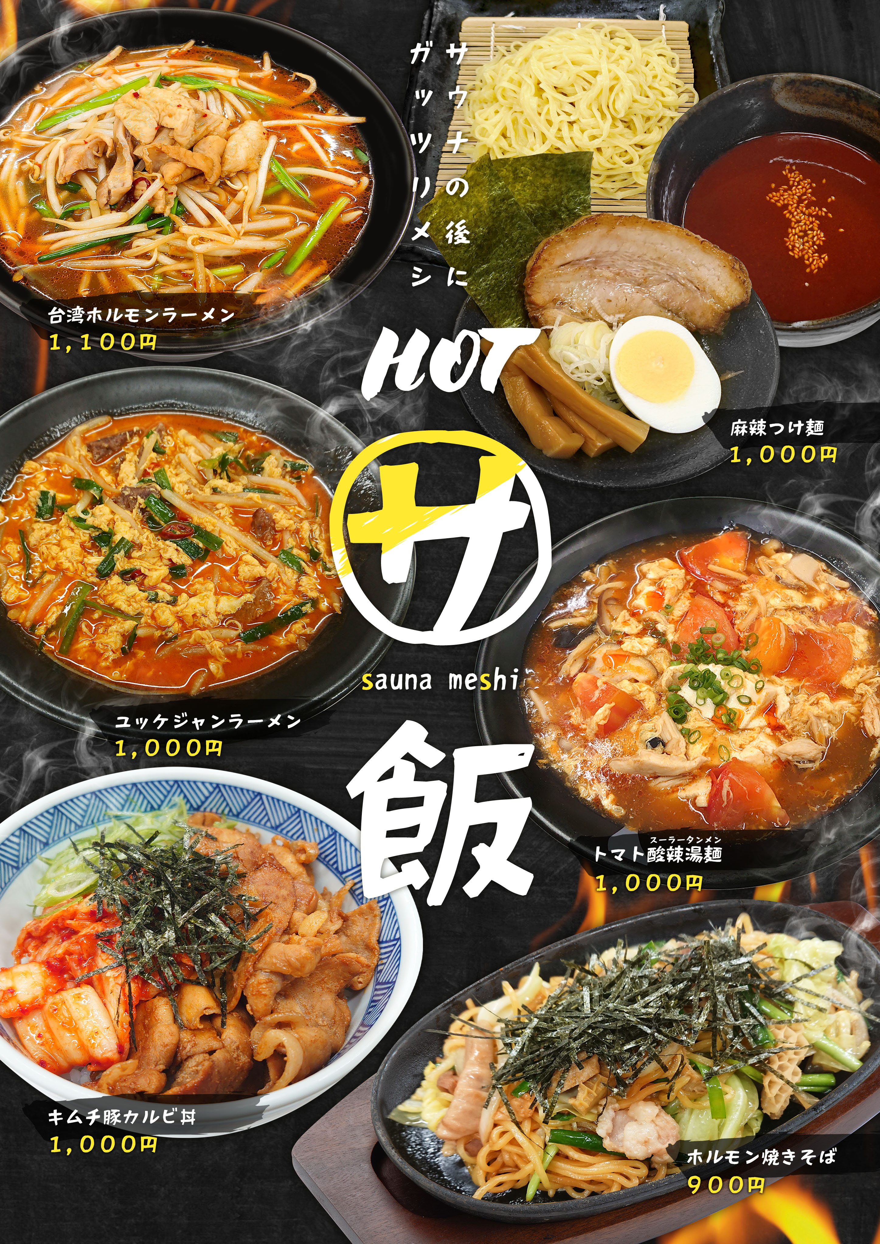 更に昨今話題のサウナは控えめな温度の「フィンランドサウナ」とブロワーで熱気を送る「熱風サウナ」の二種類を男女それぞれご用意。