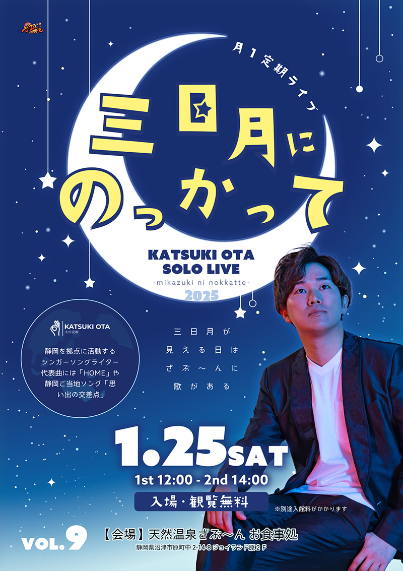 トップページ > 過去のお知らせ > 1月25日(土)開催 太田克樹ソロLIVE「三日月にのっかって」