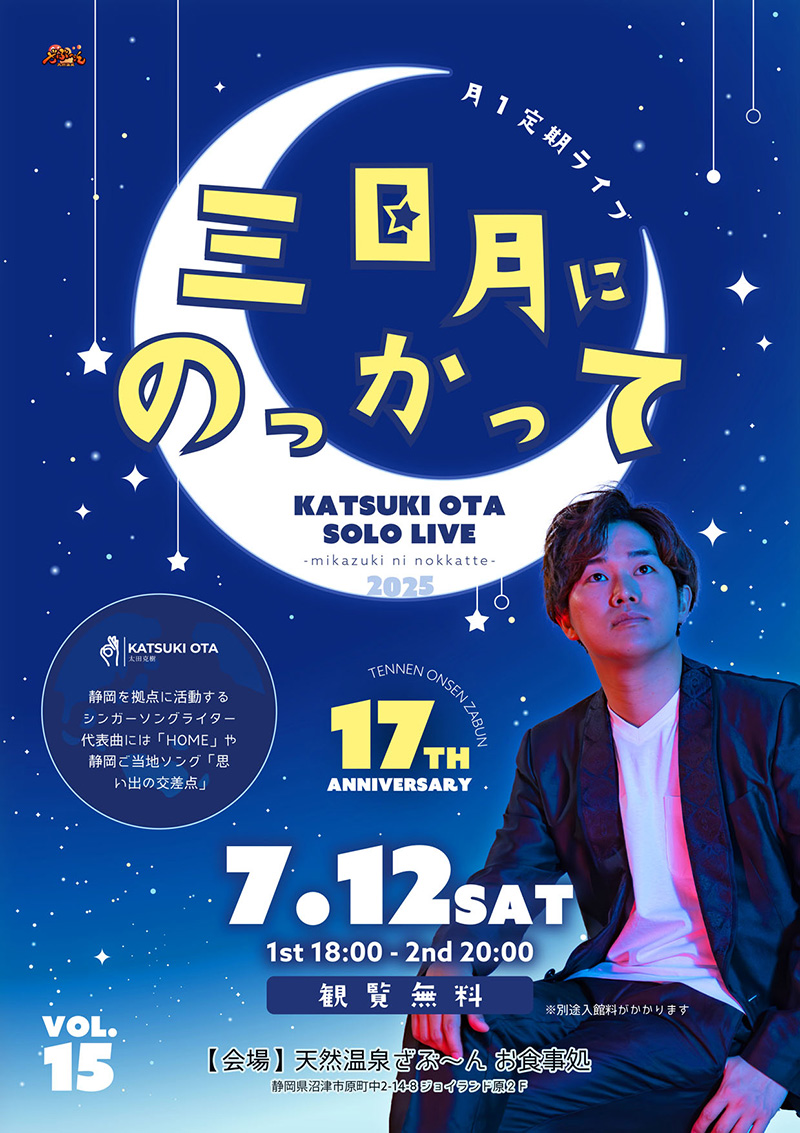トップページ > 過去のお知らせ > 7月12日(土)開催 太田克樹ソロLIVE「三日月にのっかって」